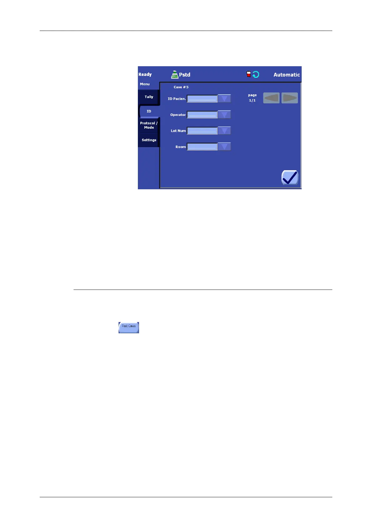 1. Touch the “Past Cases” button. The Past Cases Screen will appear on the touch screen