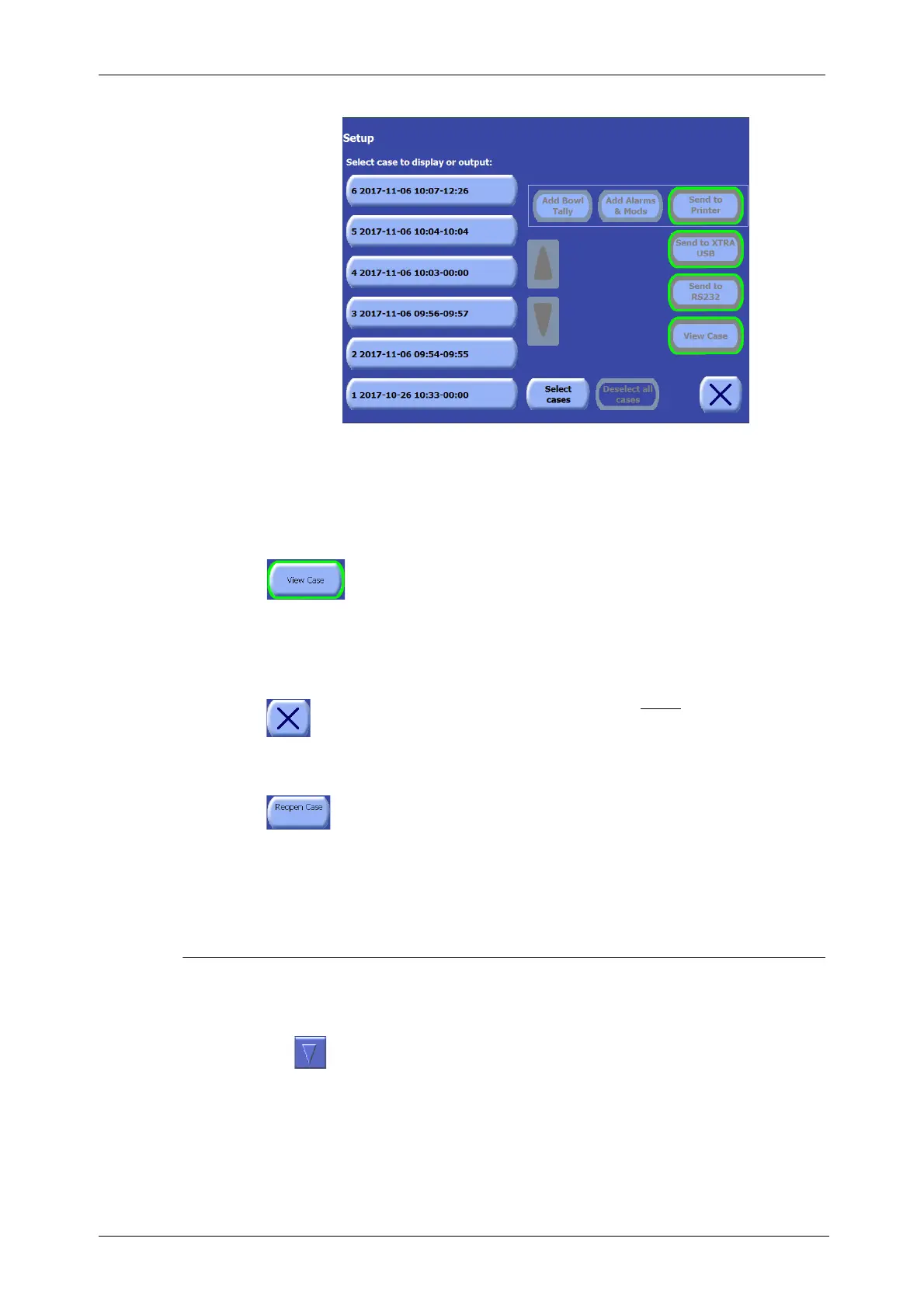Scroll through the list of past cases by touching the arrow buttons to the right of the list.