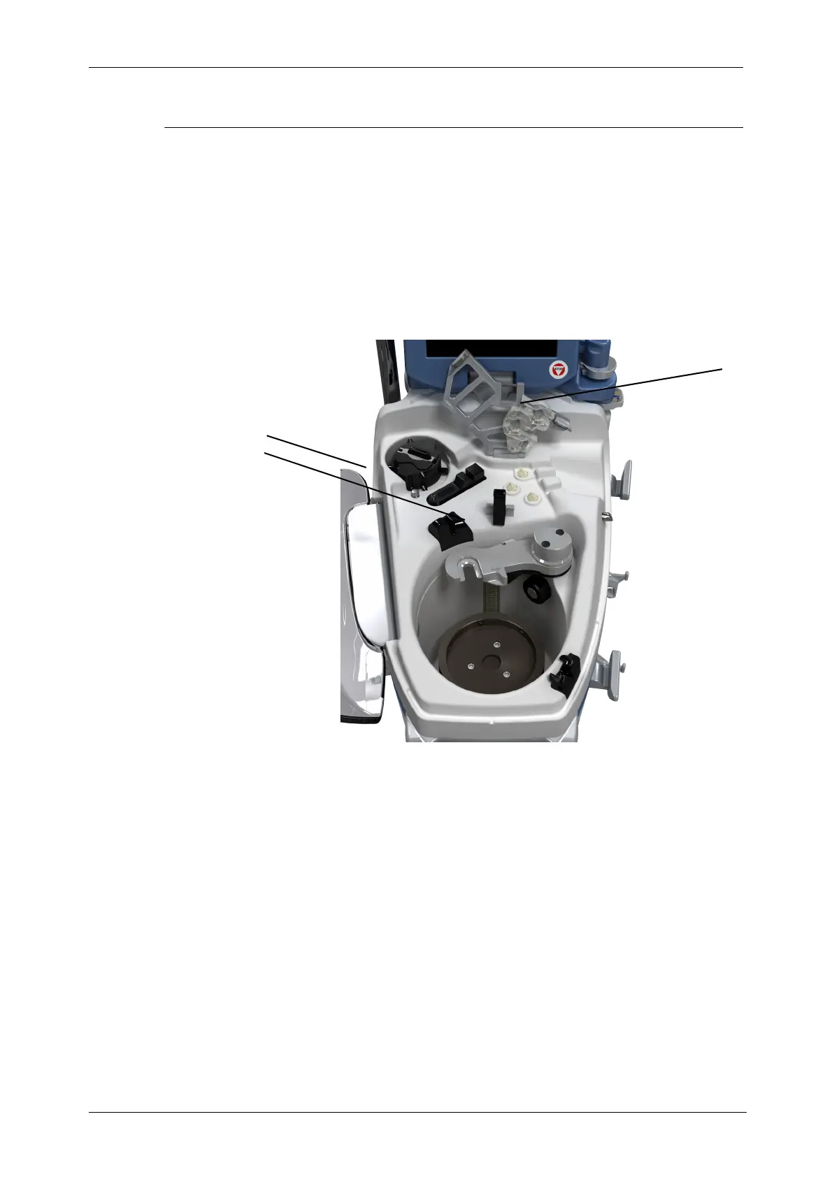 2. Hang the tray onto the two handles placed on the top right panel of the machine and open it.