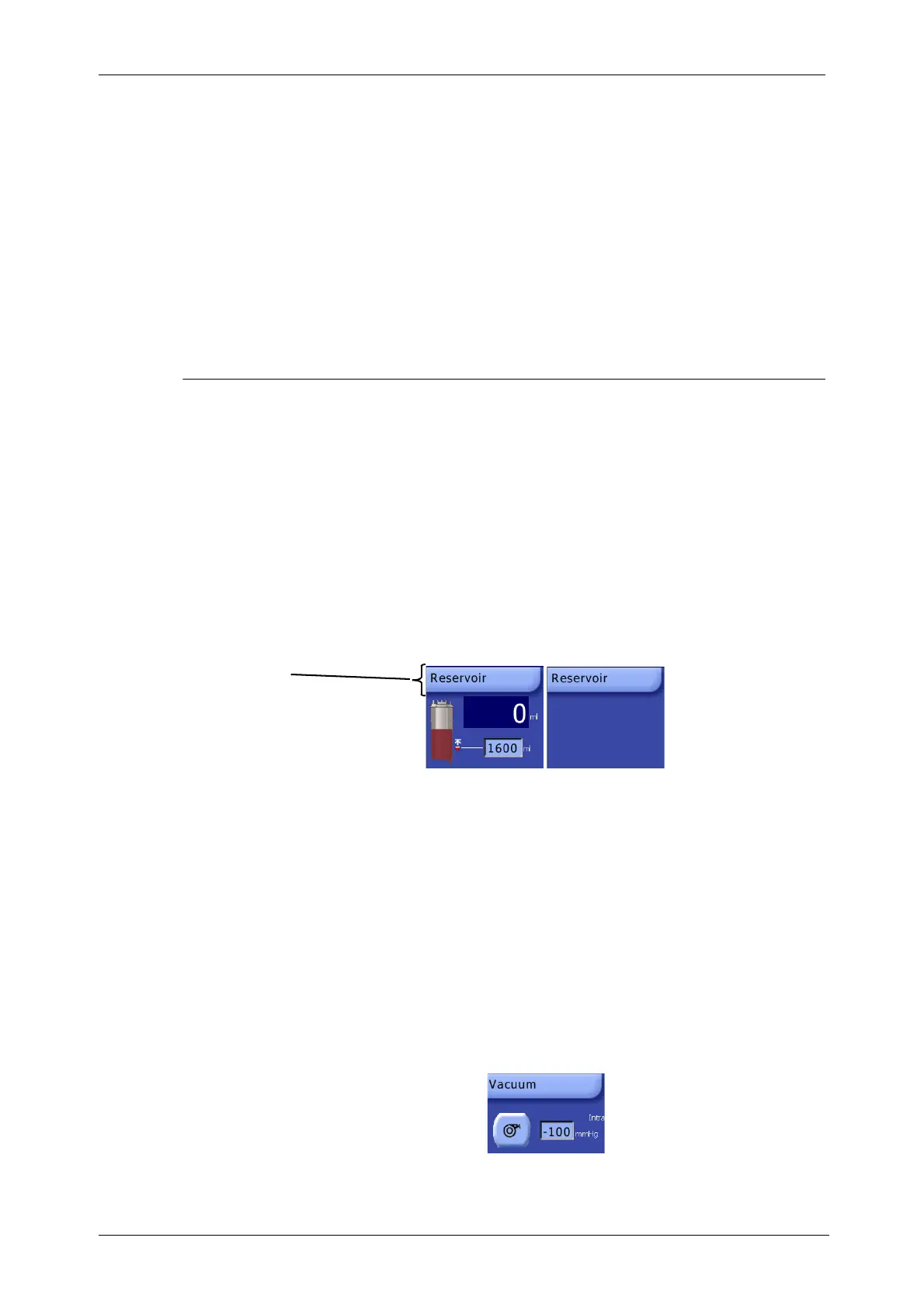 field within the reservoir displet displays the volume of fluid currently in the collection reservoir (ml).