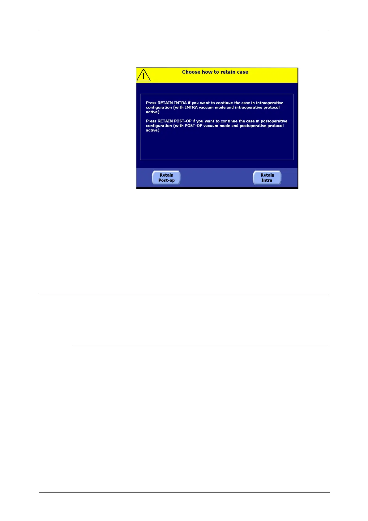 By touching “Retain Post-op” the interrupted case will be resumed with the vacuum pump and protocol