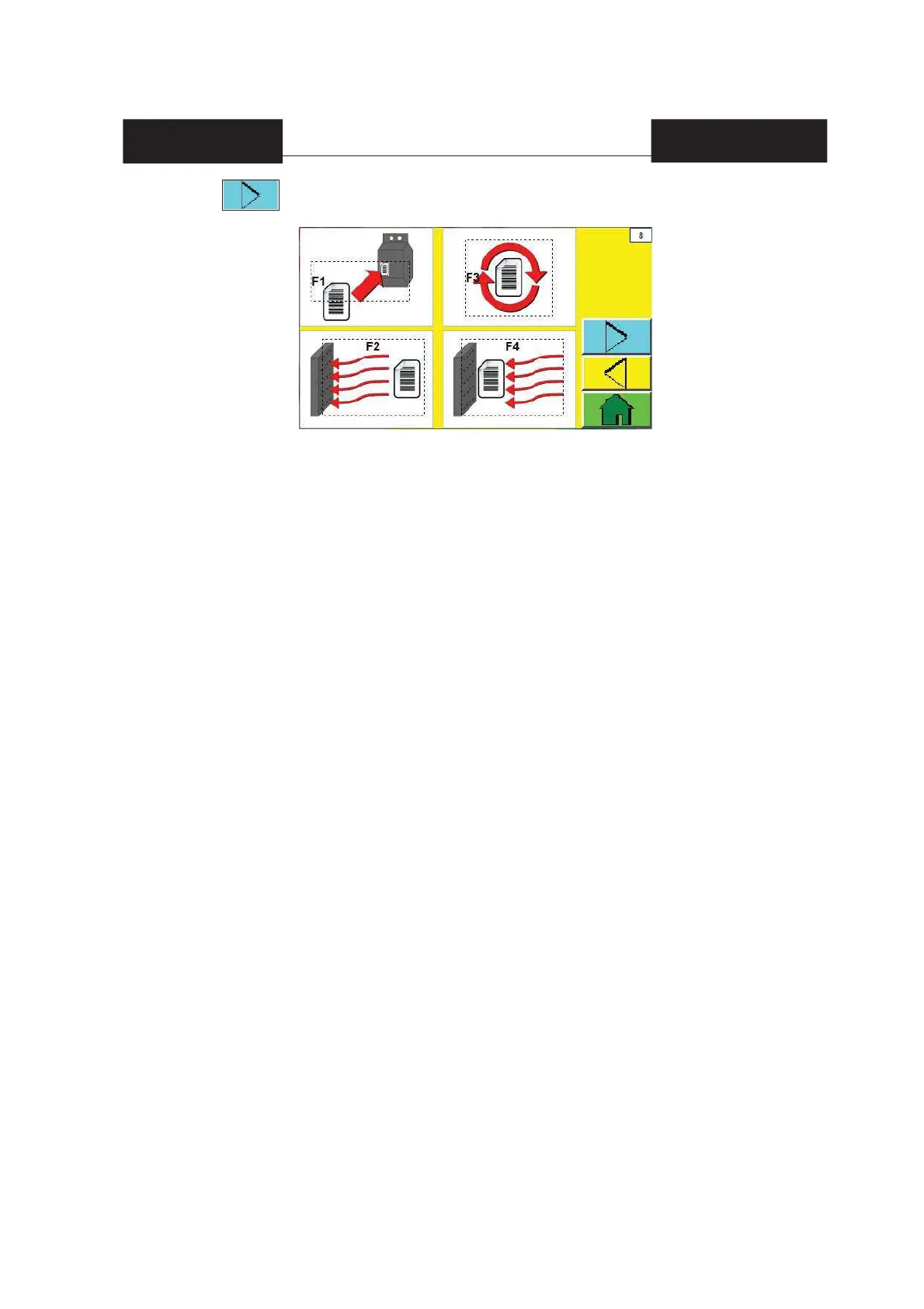 F1 = stick label = you can make the printing piston move forward so that it applies a stick-on label