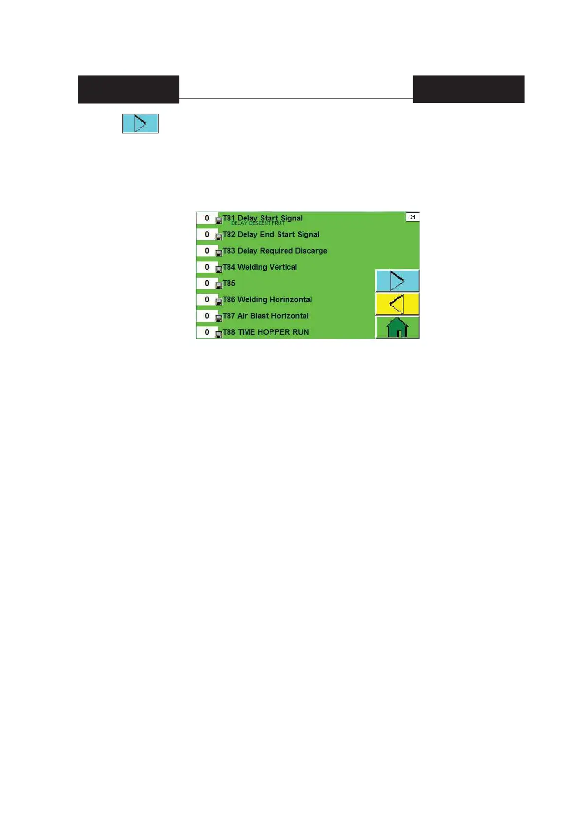 T83 Delay Required Discarge = It is the time needed for the pliers to close so that products reach the
