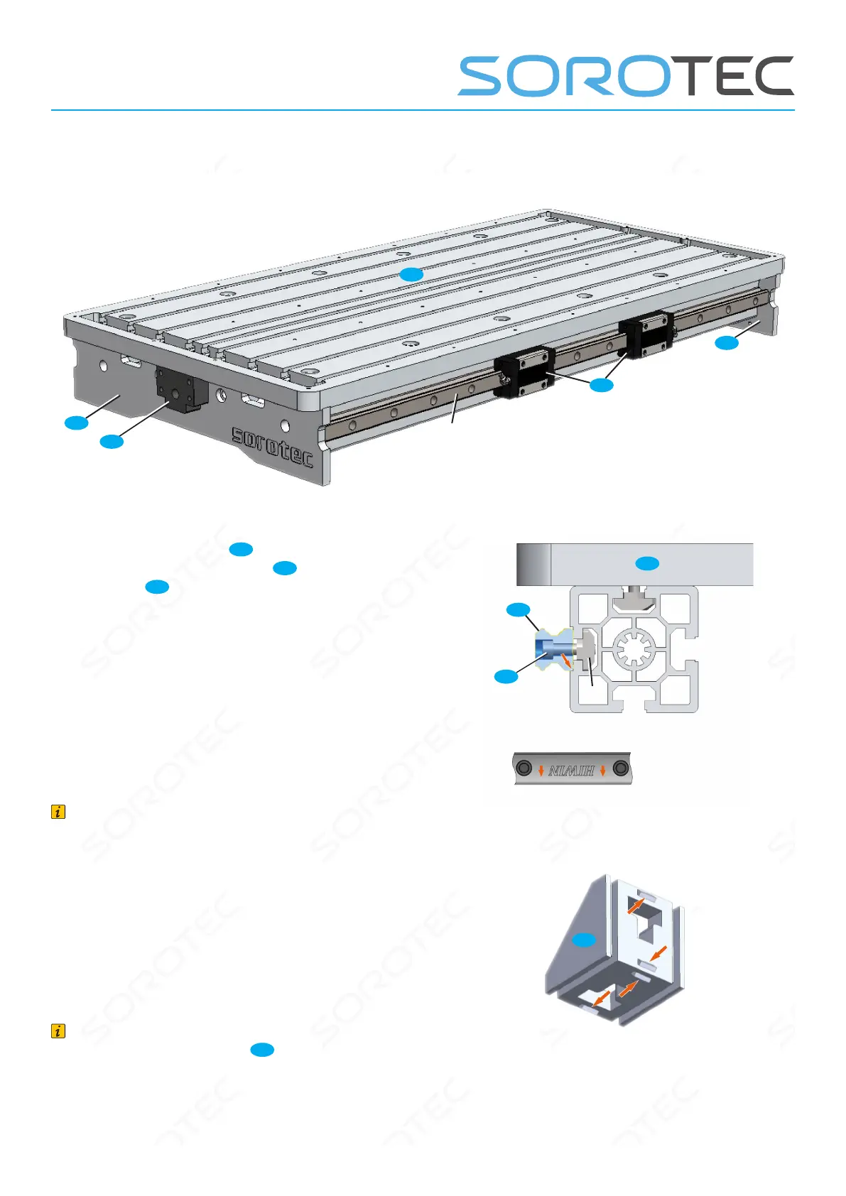 Fig. 4: Assembly of linear rails; Note the stop edge