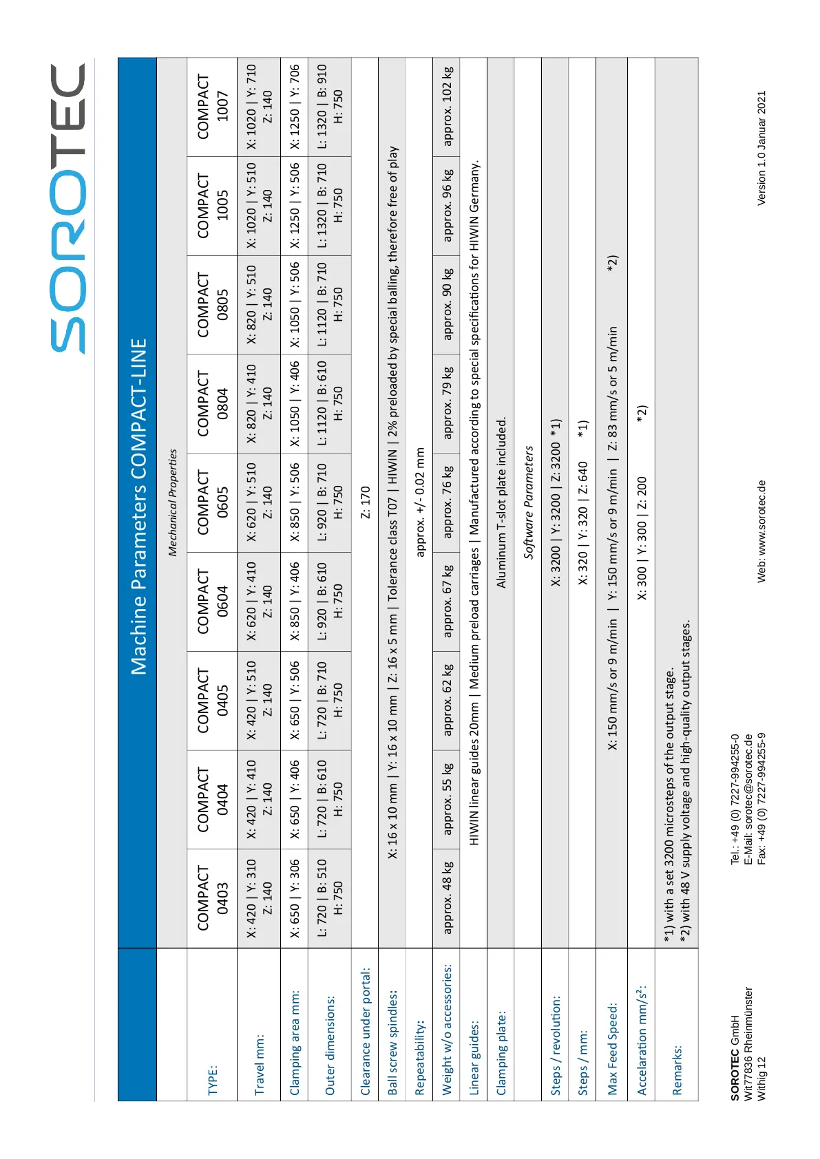 Machine Parameters COMPACT-LINE
