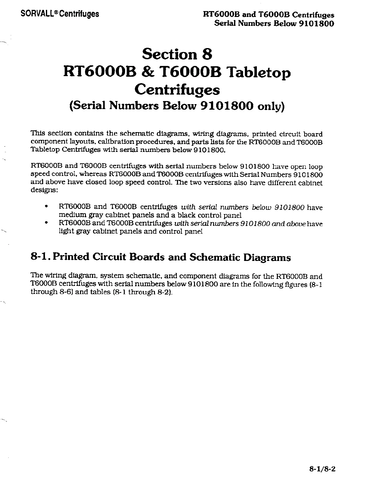 Sorvall RT/T6000D - RT6000 B & T6000 B Tabletop Centrifuges (Serial Numbers Below 9101800 only); Printed Circuit Boards and Schematic Diagrams