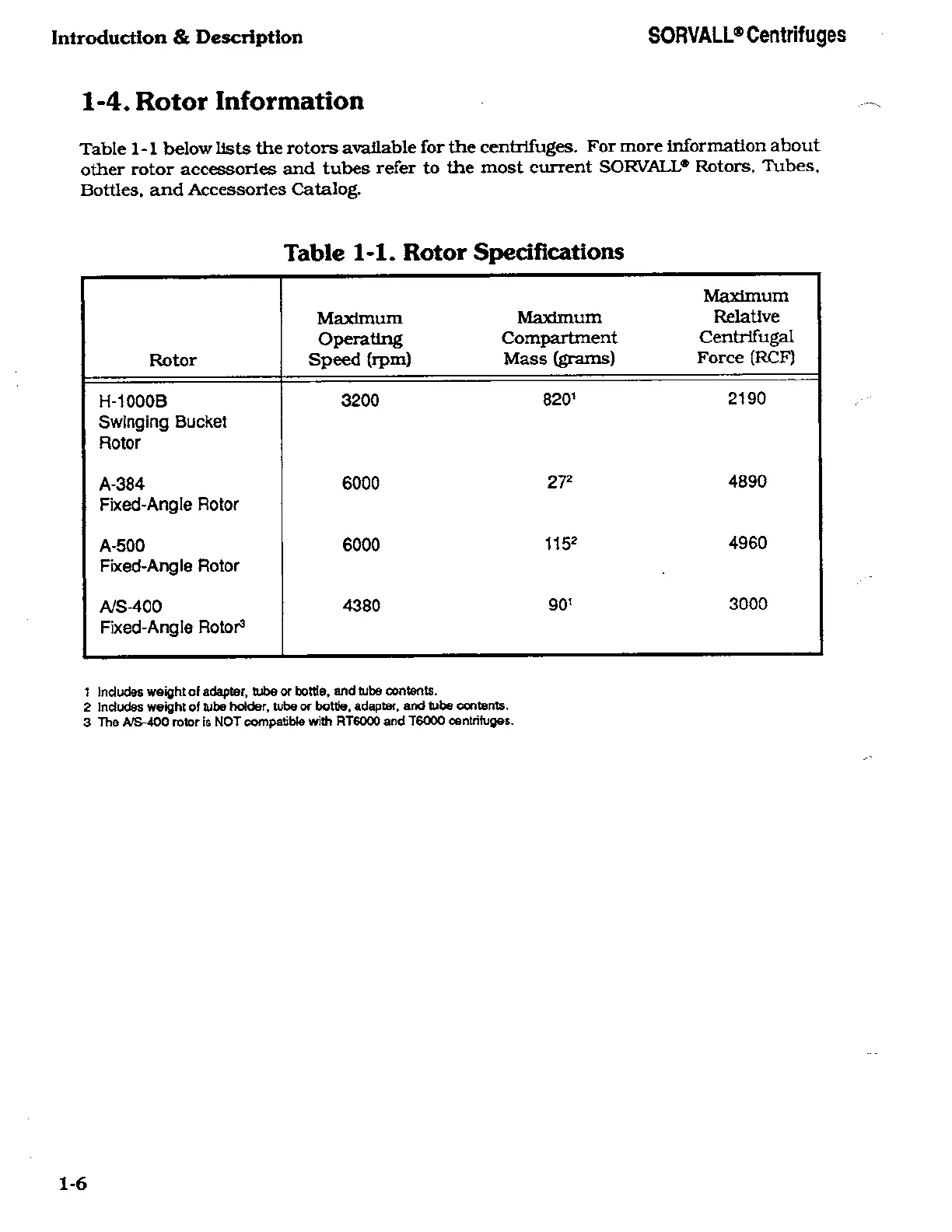 Sorvall RT/T6000D - 1-4. Rotor Information
