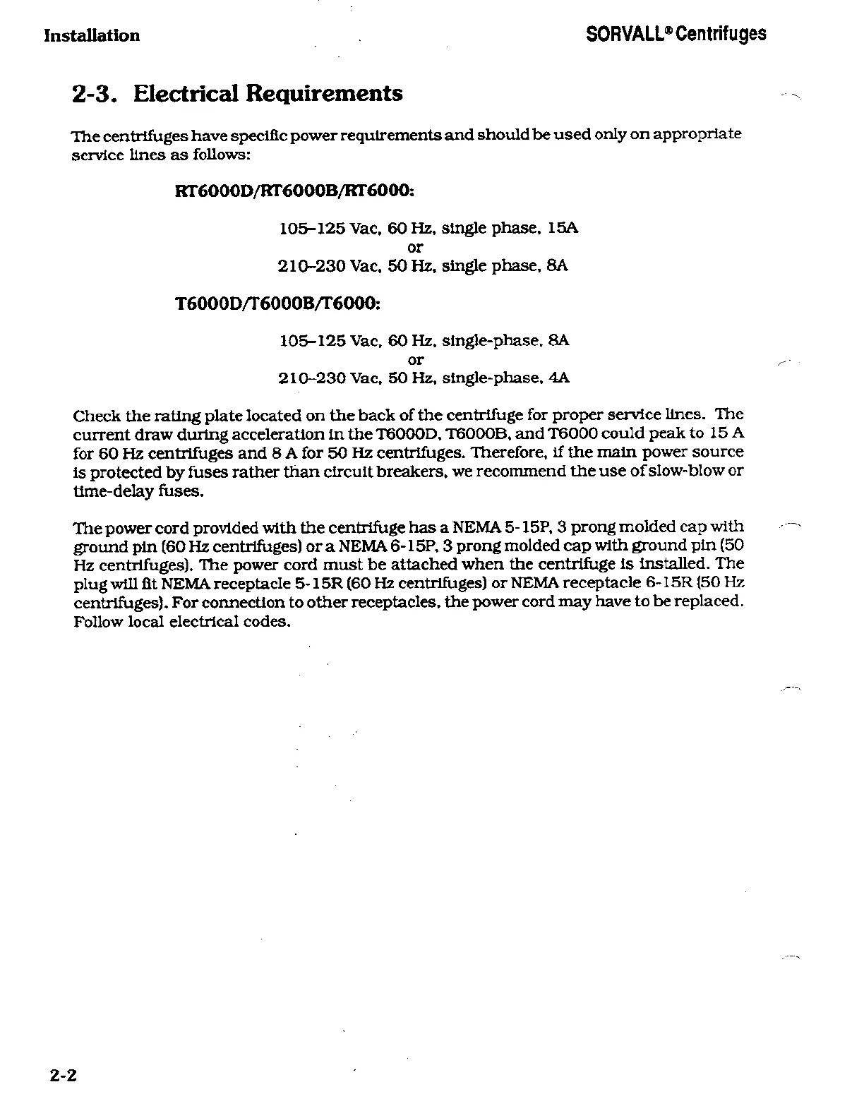 Sorvall RT/T6000D - 2-3. Electrical Requirements