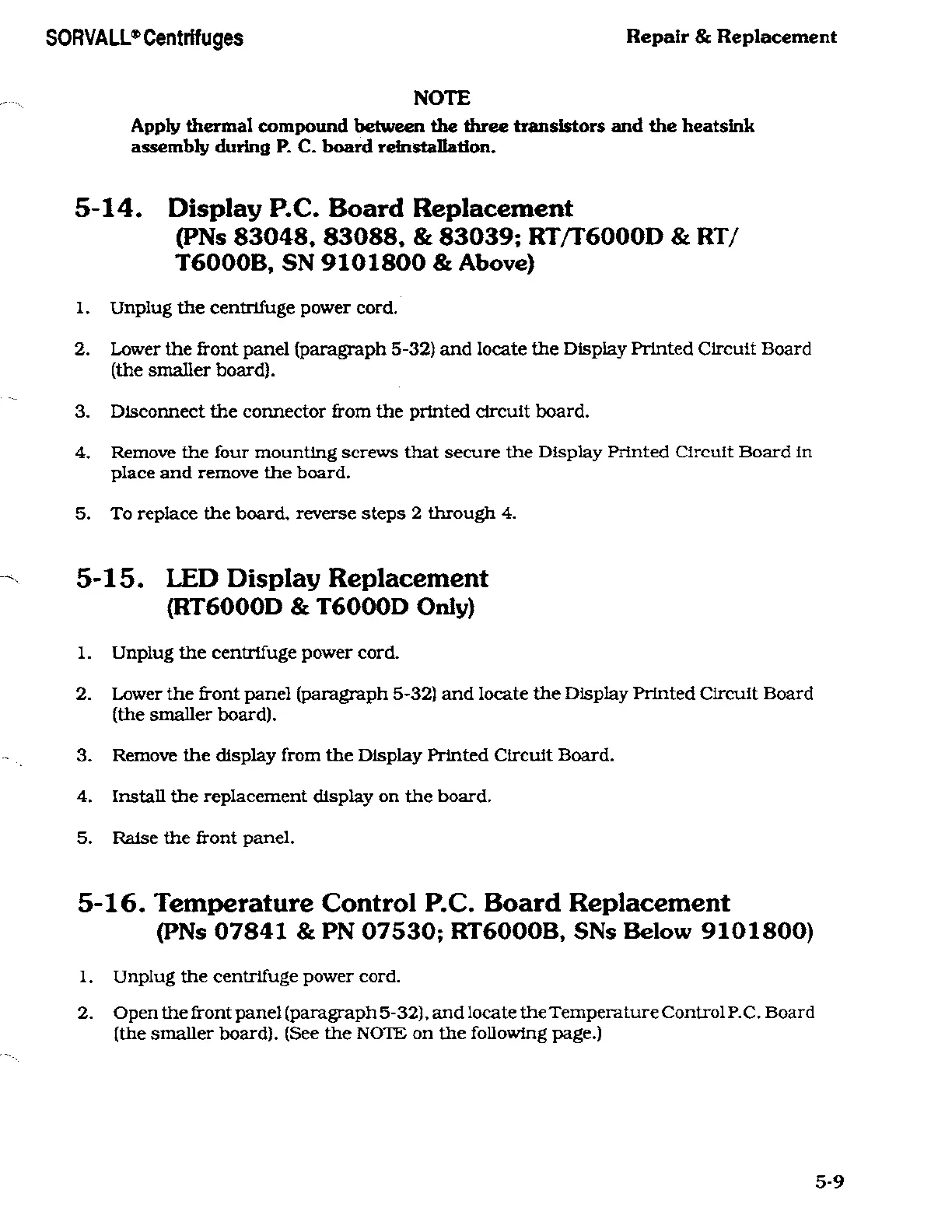 Sorvall RT/T6000D - 5-16. Temperature Control P.C. Board Replacement