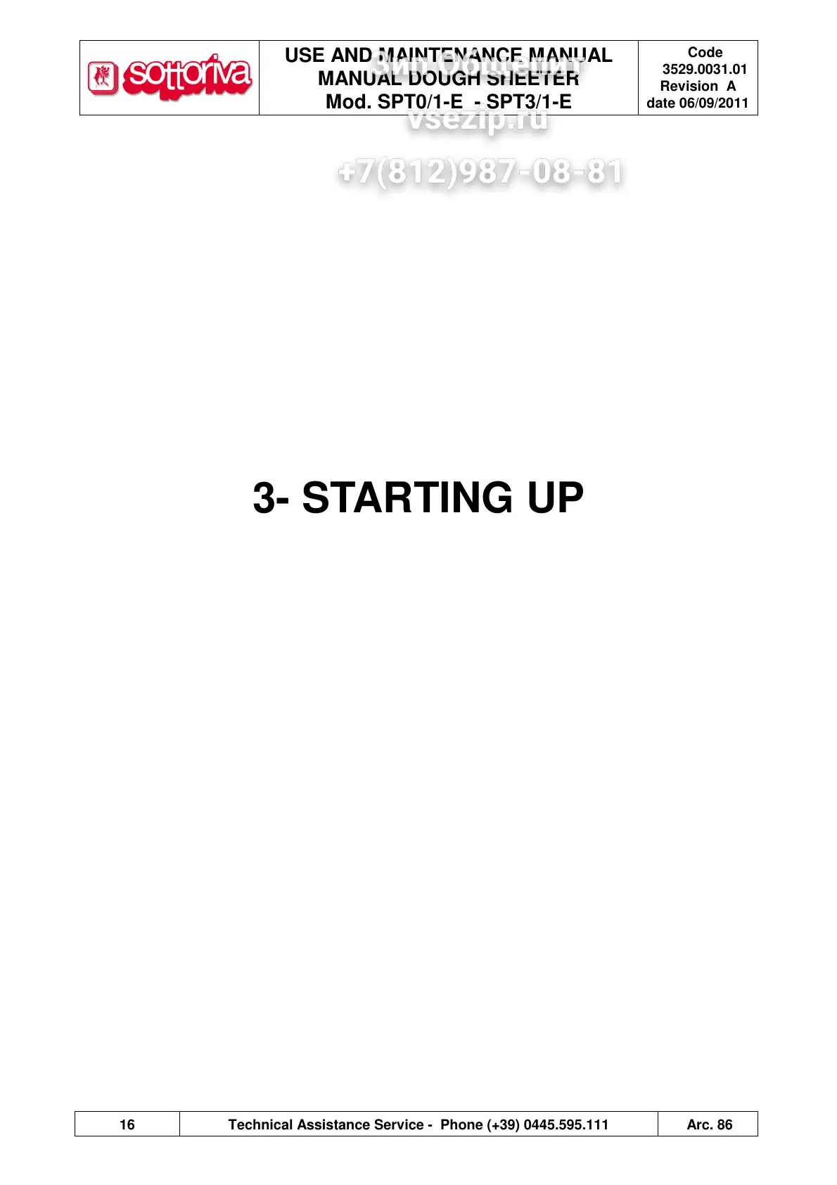 16 Technical Assistance Service - Phone (+39) 0445.595.111 Arc. 86