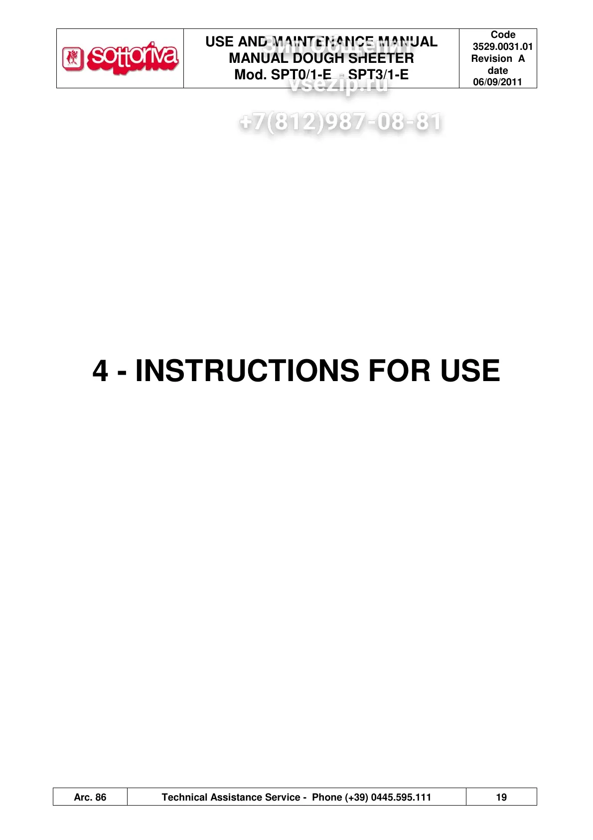 Arc. 86 Technical Assistance Service - Phone (+39) 0445.595.111 19