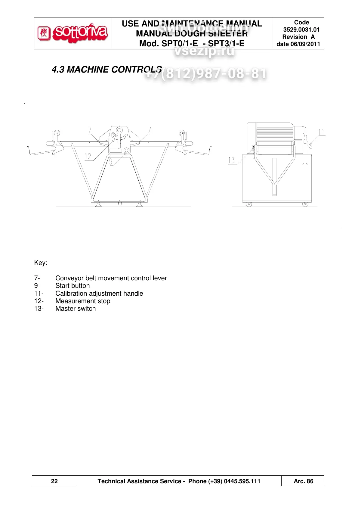 Sottoriva SPT0/1-E - Machine Controls