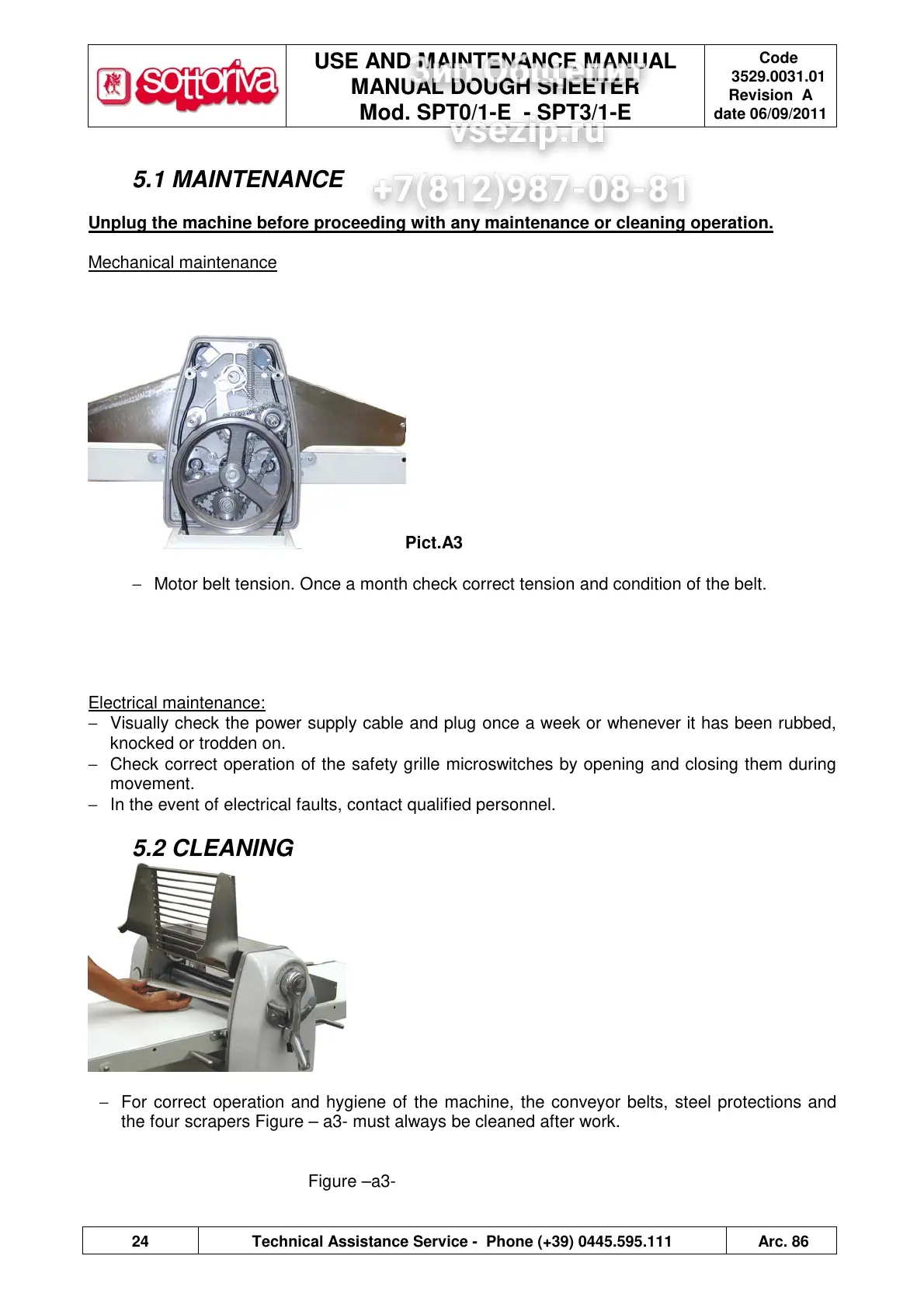 24 Technical Assistance Service - Phone (+39) 0445.595.111 Arc. 86
