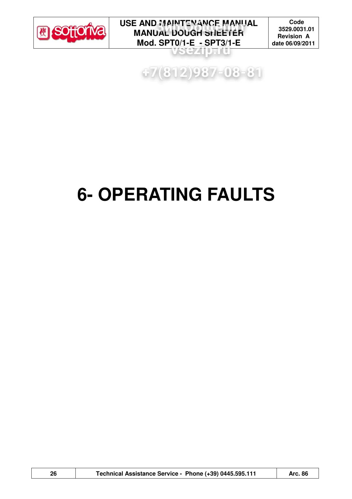 Sottoriva SPT0/1-E - 6- Operating Faults