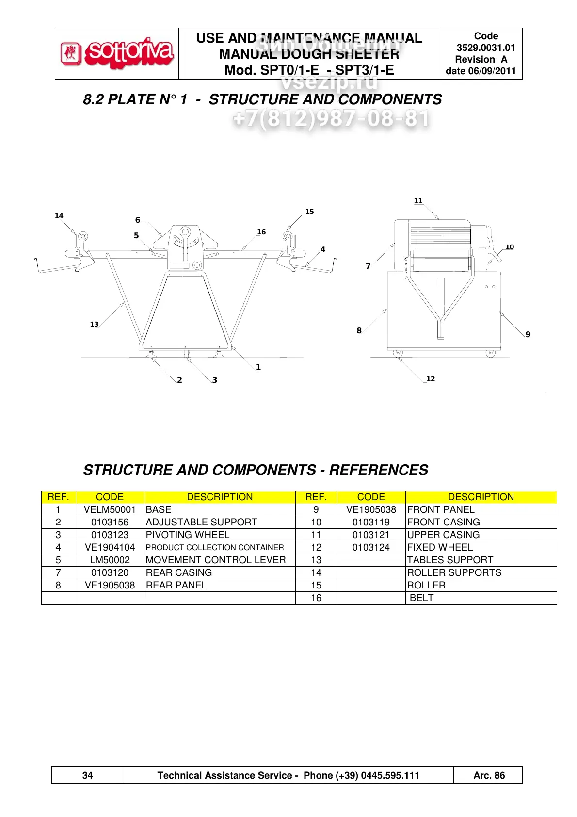34 Technical Assistance Service - Phone (+39) 0445.595.111 Arc. 86