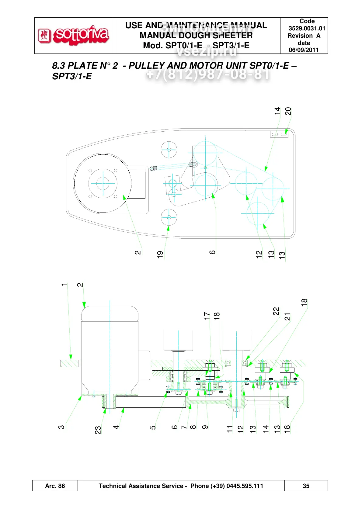 8.3 PLATE N° 2 - PULLEY AND MOTOR UNIT SPT0/1-E –