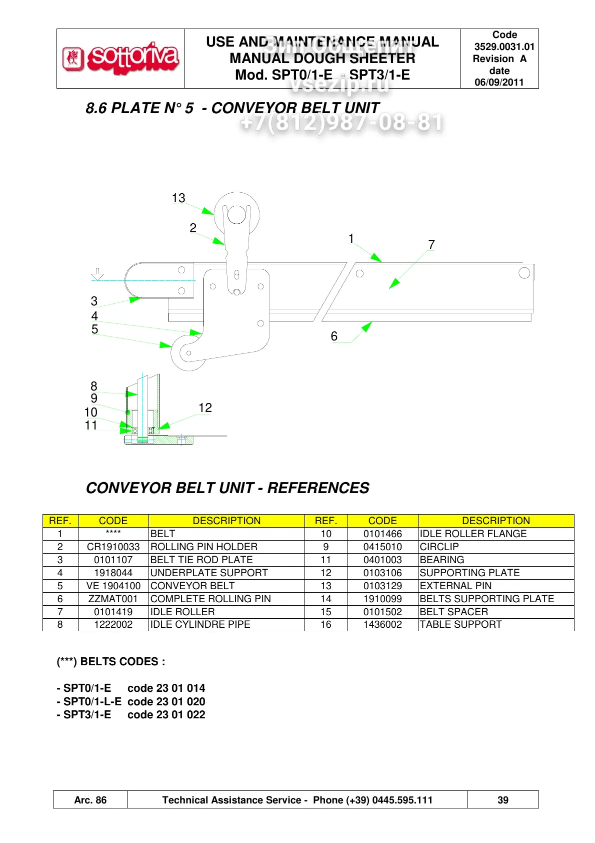 8.6 PLATE N° 5 - CONVEYOR BELT UNIT