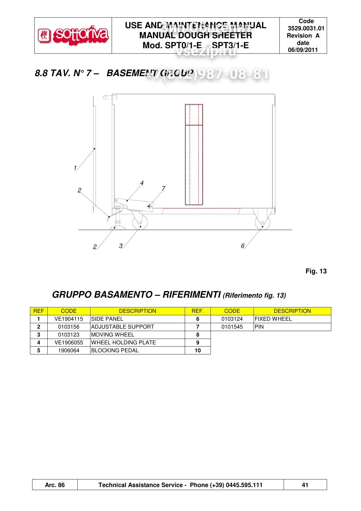 GRUPPO BASAMENTO – RIFERIMENTI (Riferimento fig. 13)