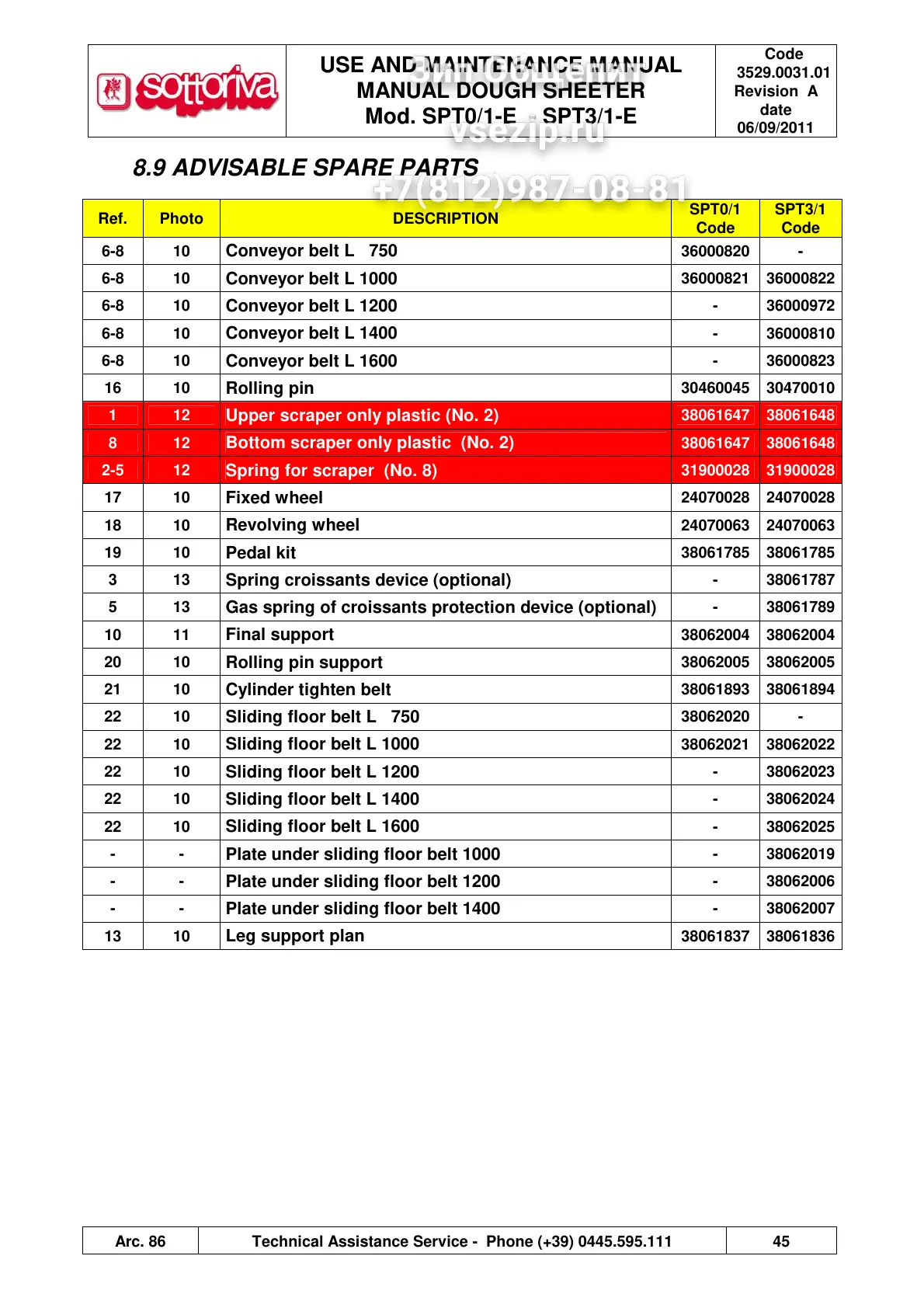 Arc. 86 Technical Assistance Service - Phone (+39) 0445.595.111 45