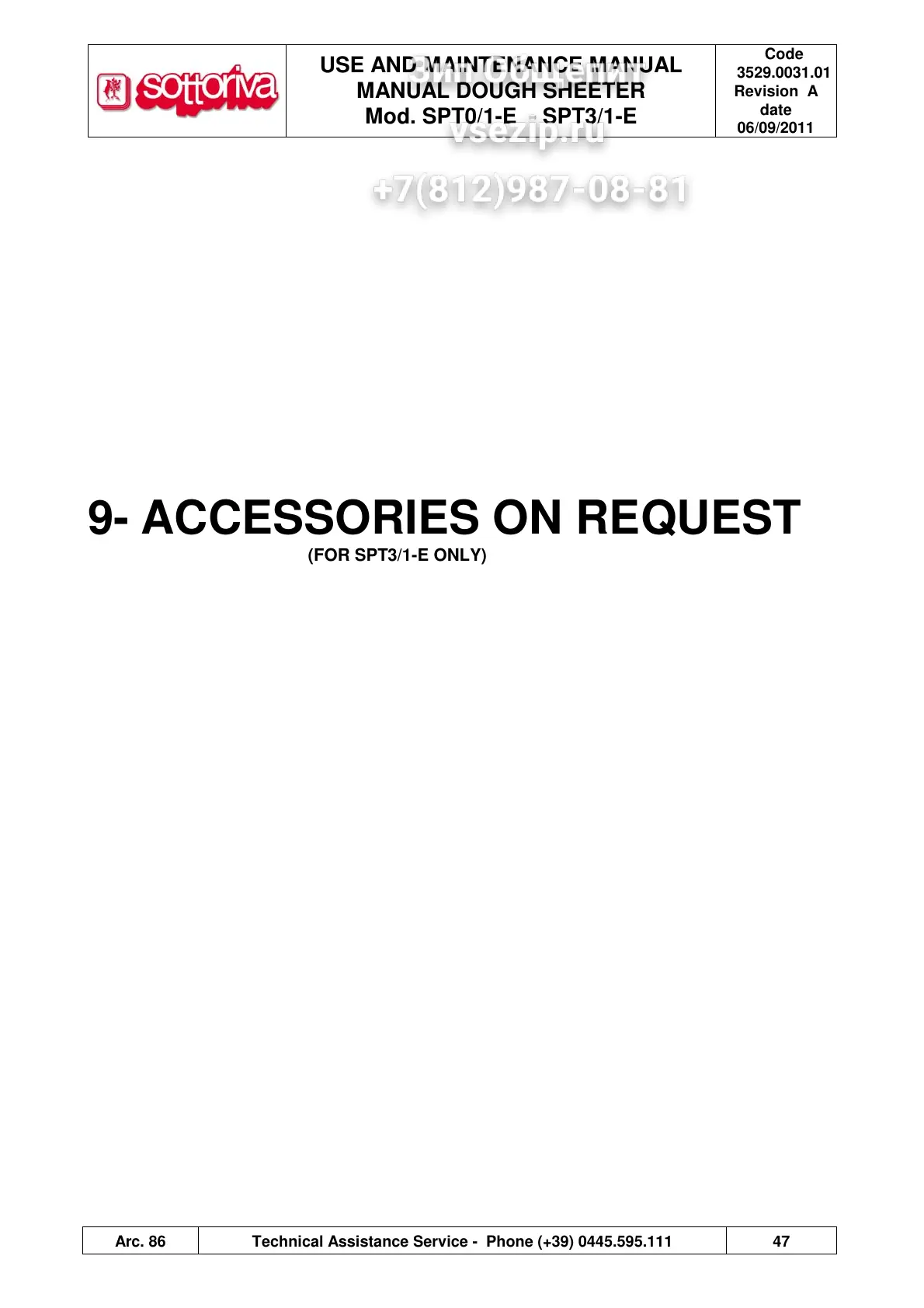 Sottoriva SPT0/1-E - 9- Accessories on Request