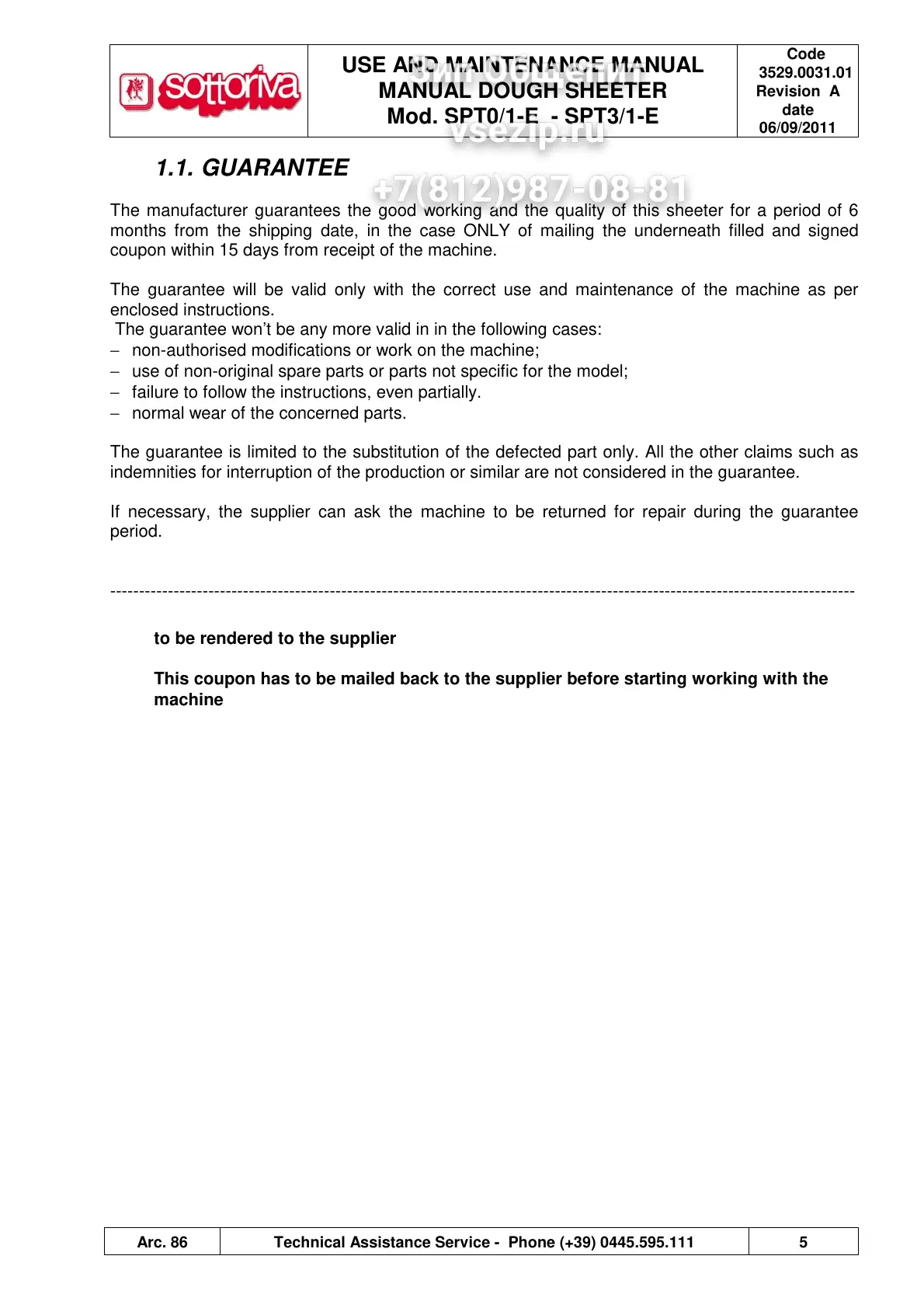 Arc. 86 Technical Assistance Service - Phone (+39) 0445.595.111 5