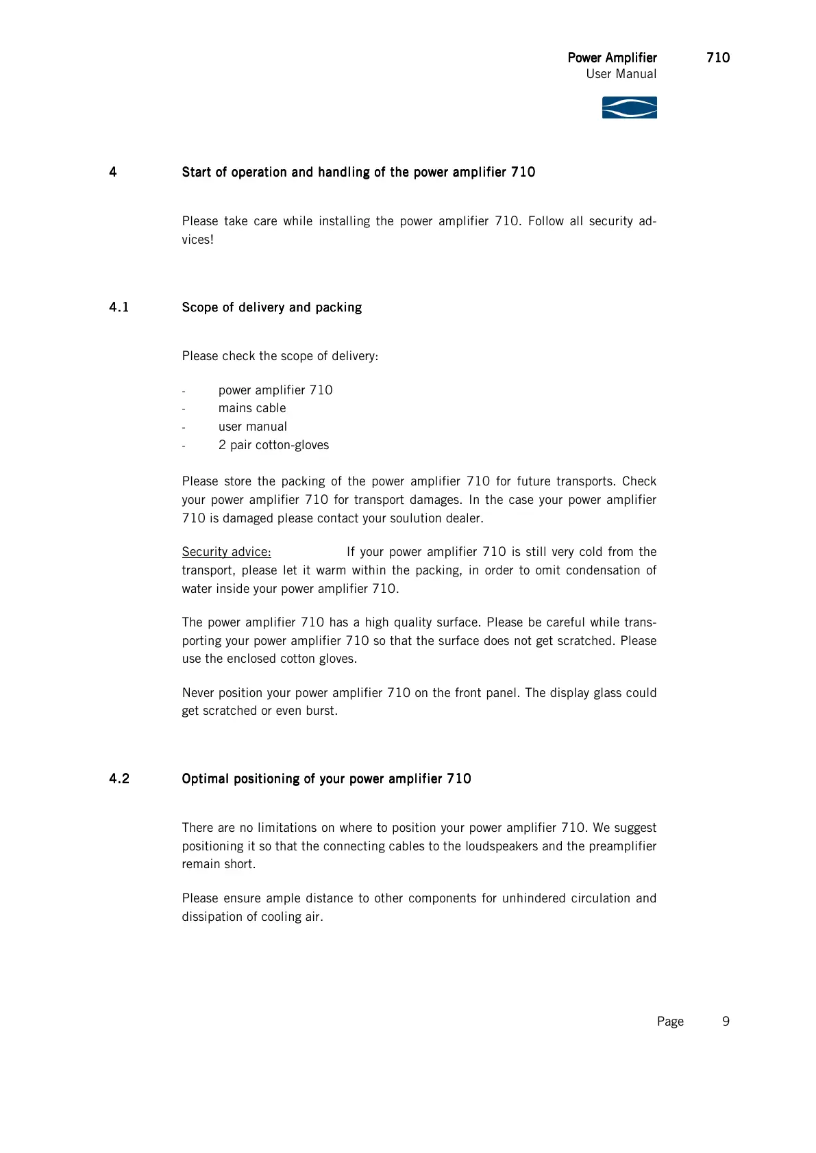 Security advice: If your power amplifier 710 is still very cold from the