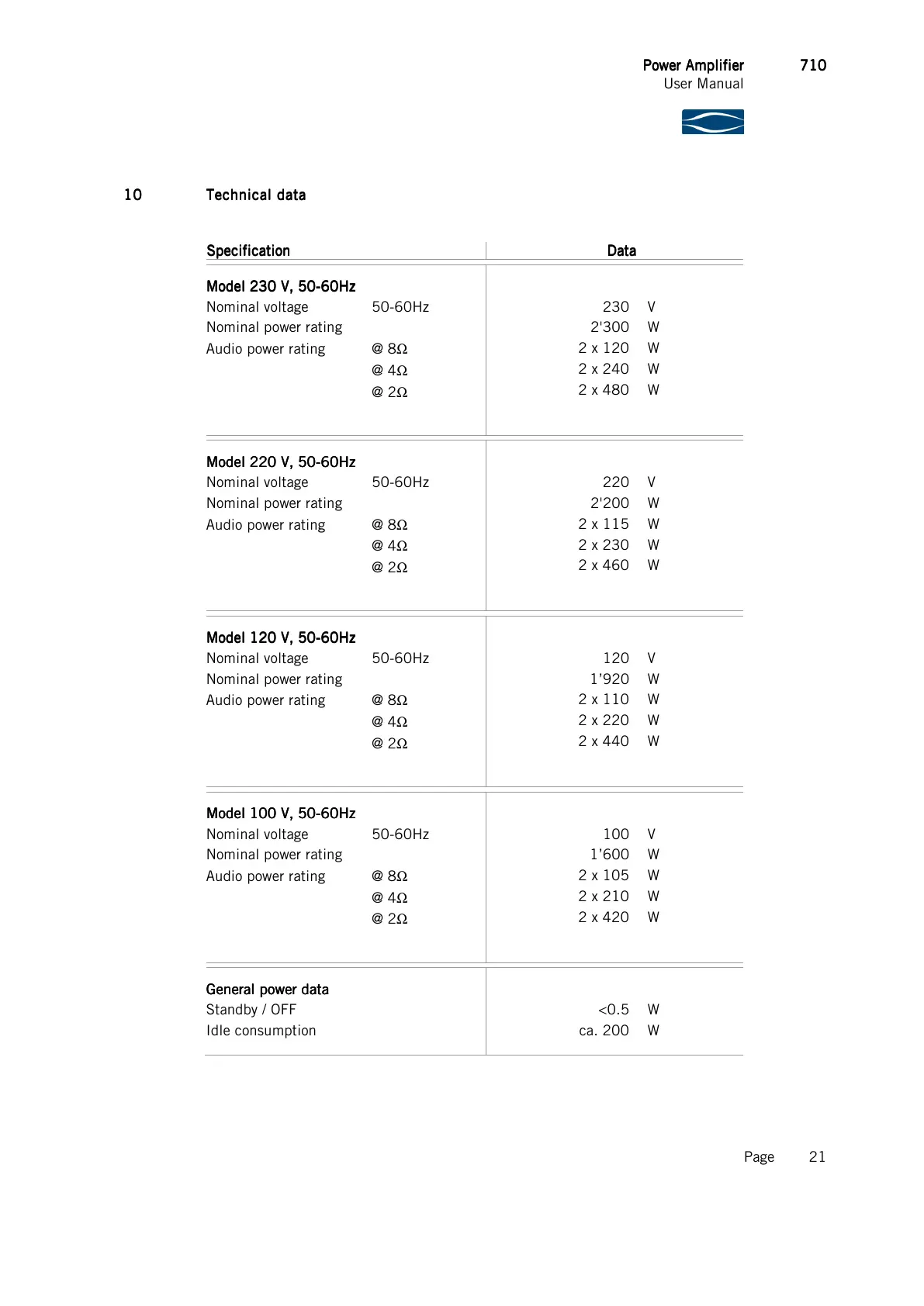 10 Technical data