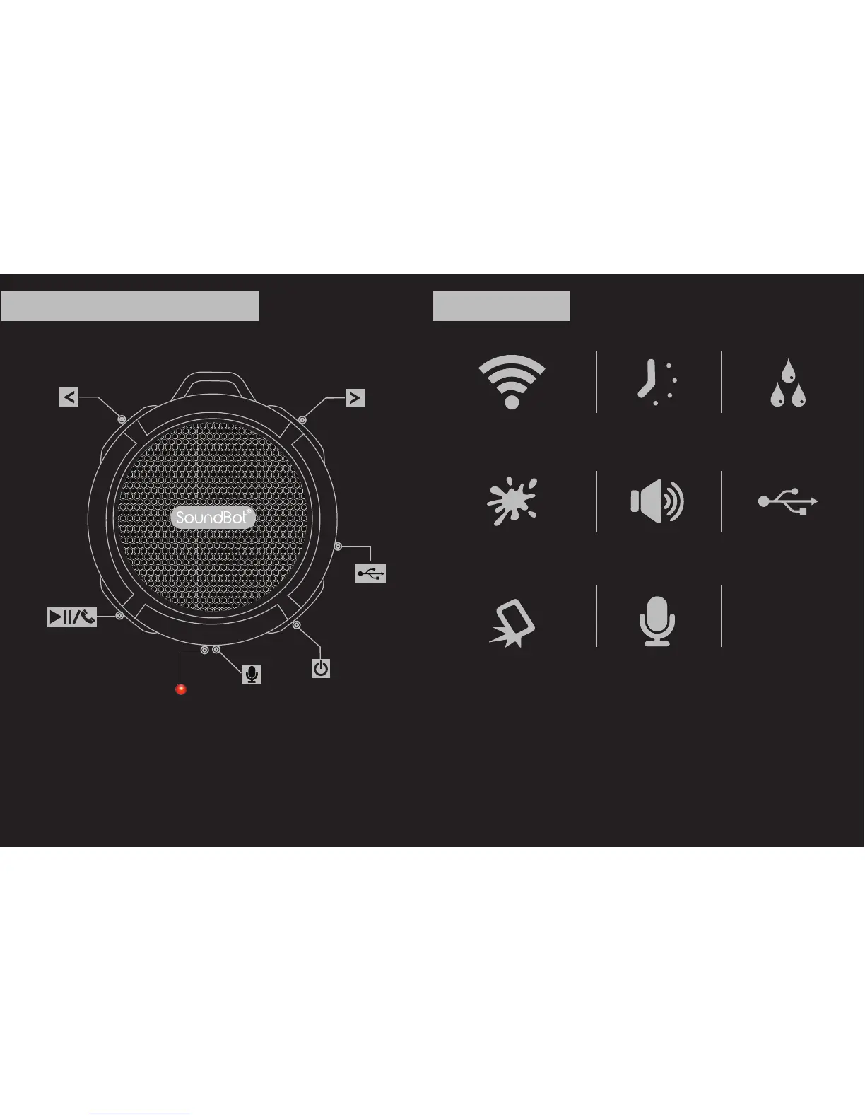 Soundbot SB512 - Product Feature Diagram; Key Product Features; Wireless Range, Playback, and Durability