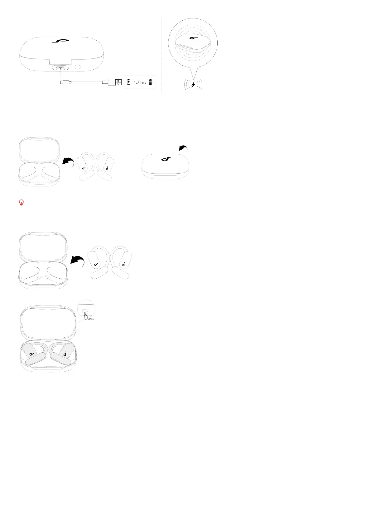 1. Return the earbuds to the charging case and leave the case open.