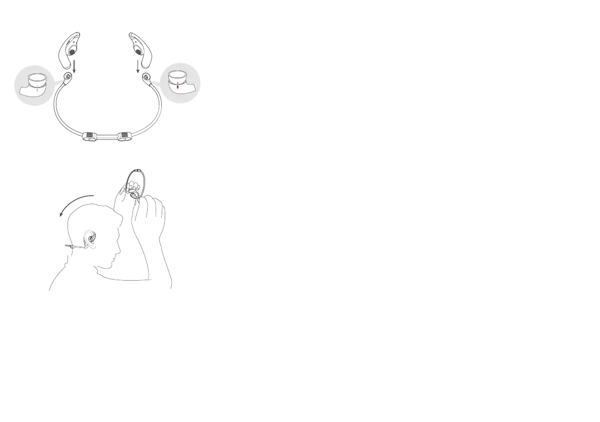 2. Snap the earbuds onto the detachable neckband. Make sure the orientation is correct by aligning the marks on the earbuds and detachable neckband.