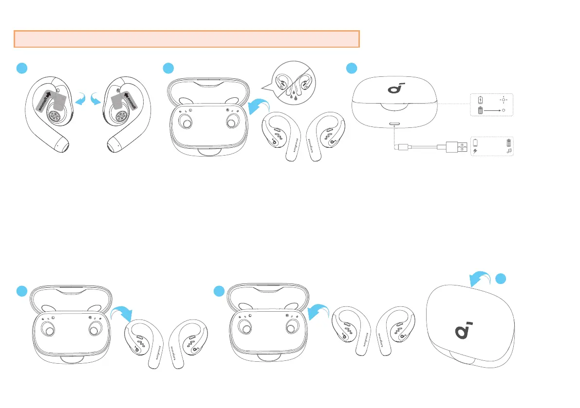 • Fully dry off the earbuds and the USB-C charging port before charging.