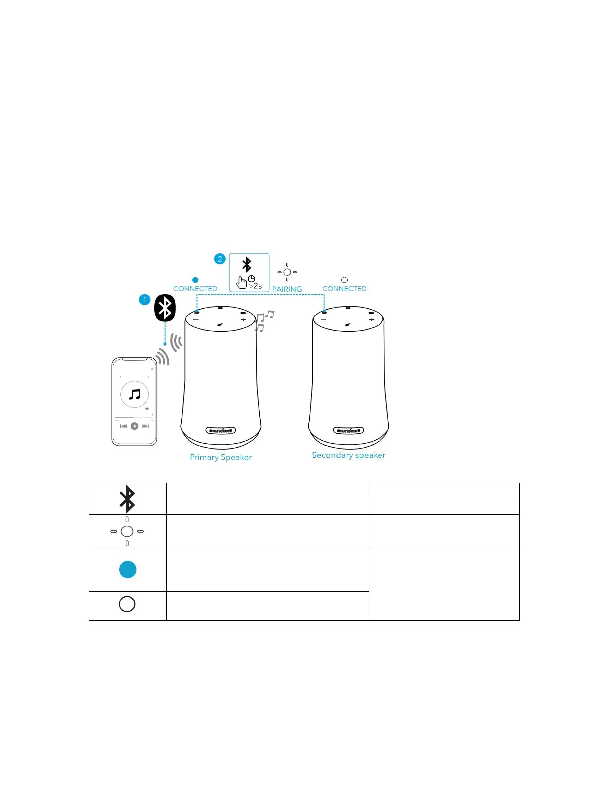 • Avsluta TWS-läget genom att hålla in Bluetooth-knappen i två sekunder.
