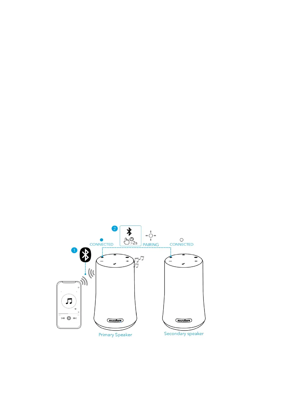 2. 2 台の Soundcore Flare Mini の Bluetooth ボタンを同時に 2 秒長押しし、約 5