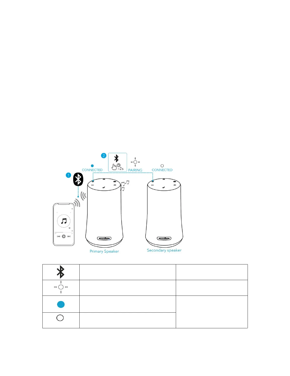 2. 同時在這兩部 Soundcore 揚聲器上,按住藍牙按鈕約 2 秒,即可進入 TWS 配對