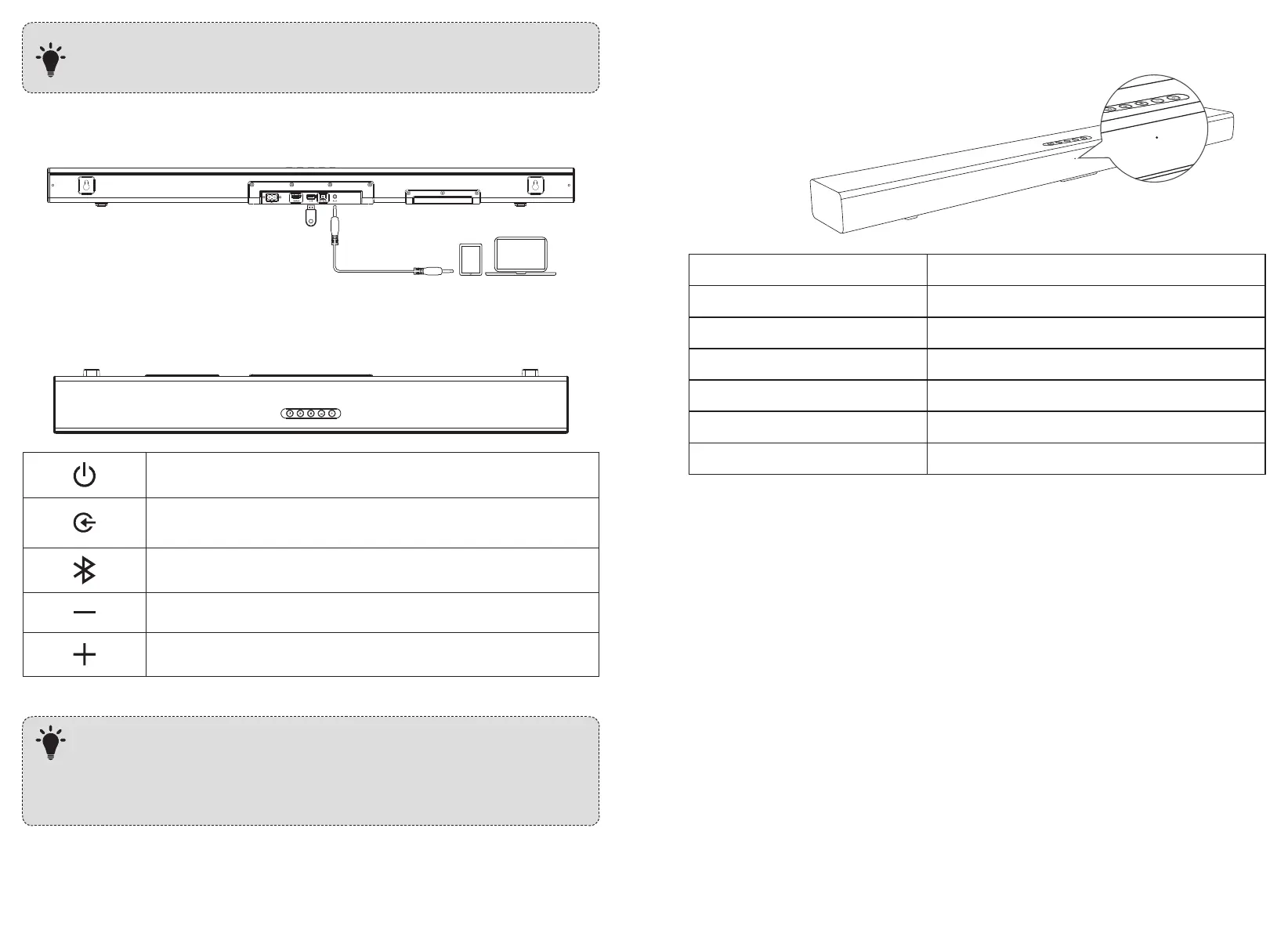 按下任何按鈕或接收到來源輸入時,長條音箱將從待機模式