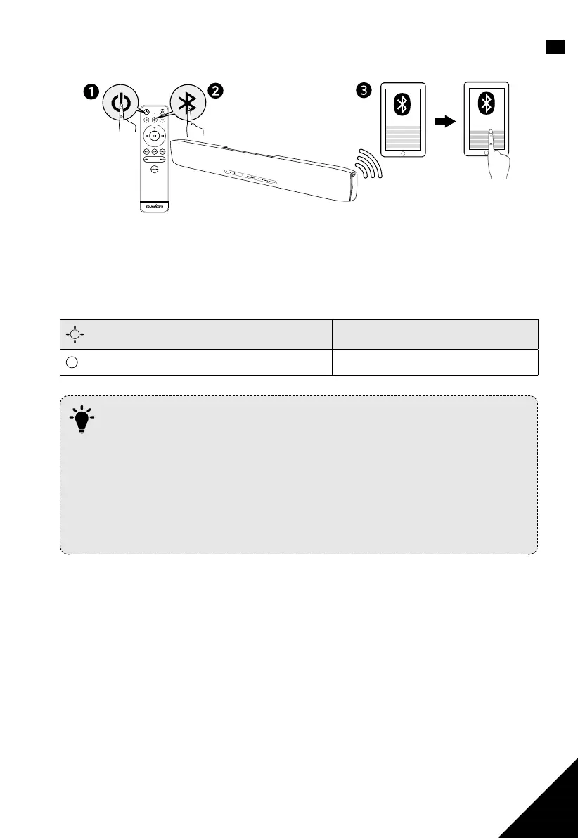 1. Нажмите кнопку питания на пульте ДУ, чтобы включить саундбар.