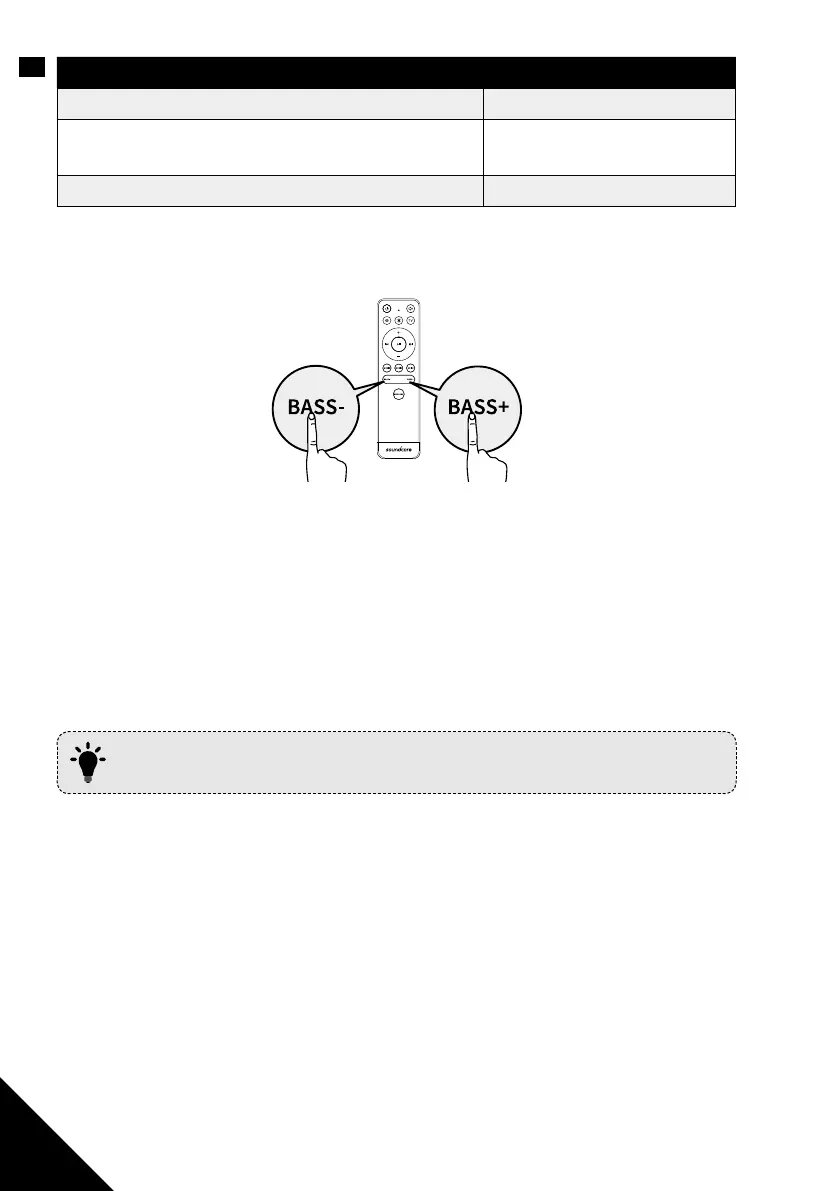 Press Bass + and Bass - buttons on the remote control to adjust the bass.