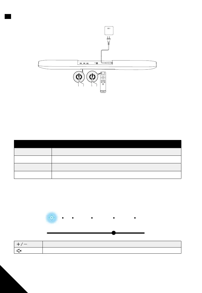 1. Ein- / Aus-Taste am Soundbar oder auf der Fernbedienung drücken, um den