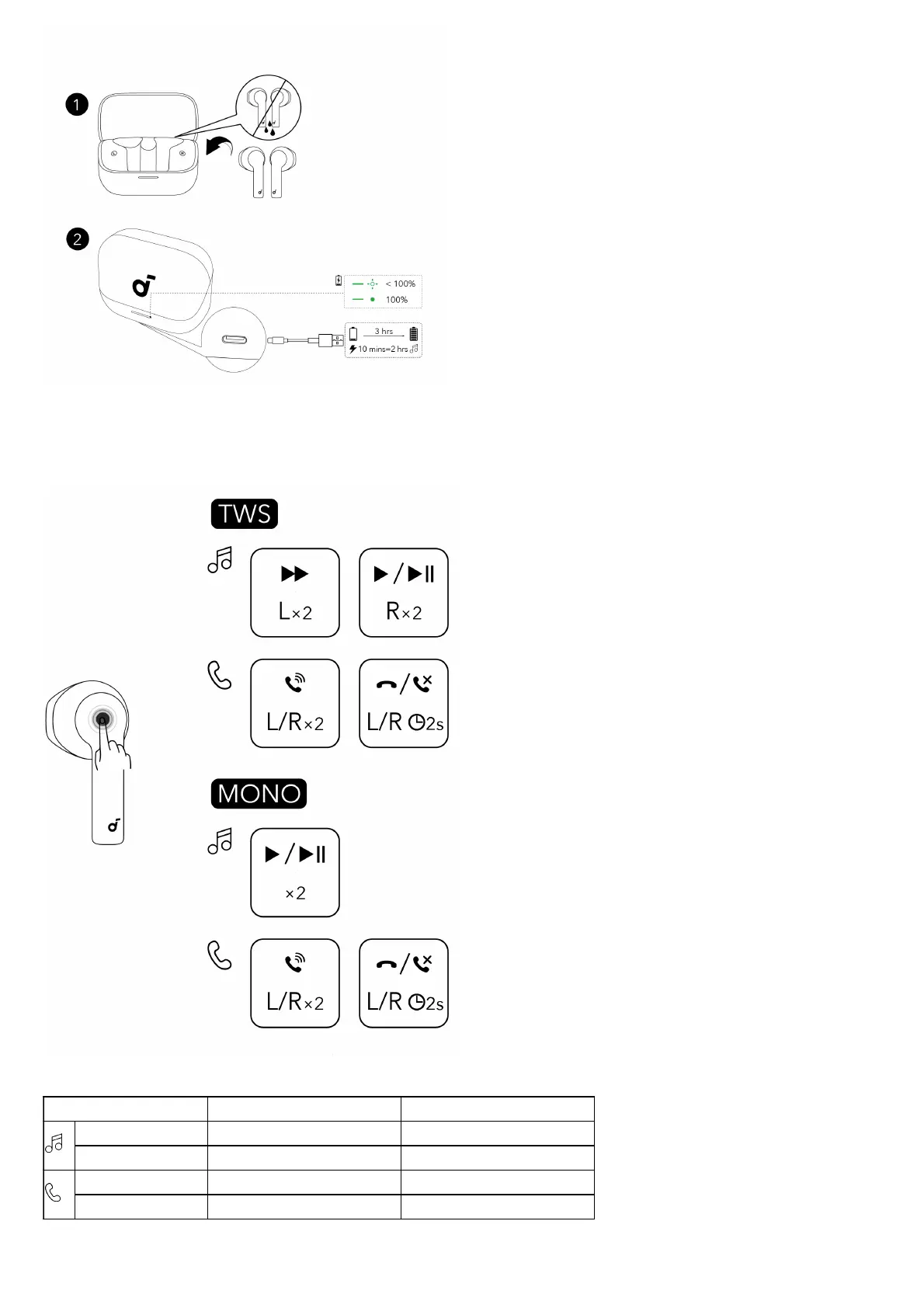 Reject / end a call Tap and hold for 2 seconds (L/R) Tap and hold for 2 seconds