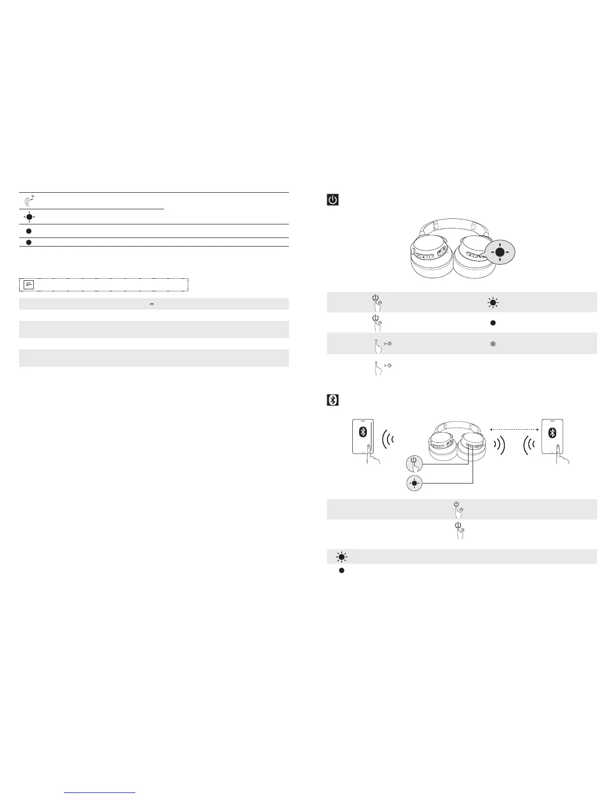 Tryk og hold nede i mere end 3 sekunder Blinker blåt (Bluetooth-LED-indikator)