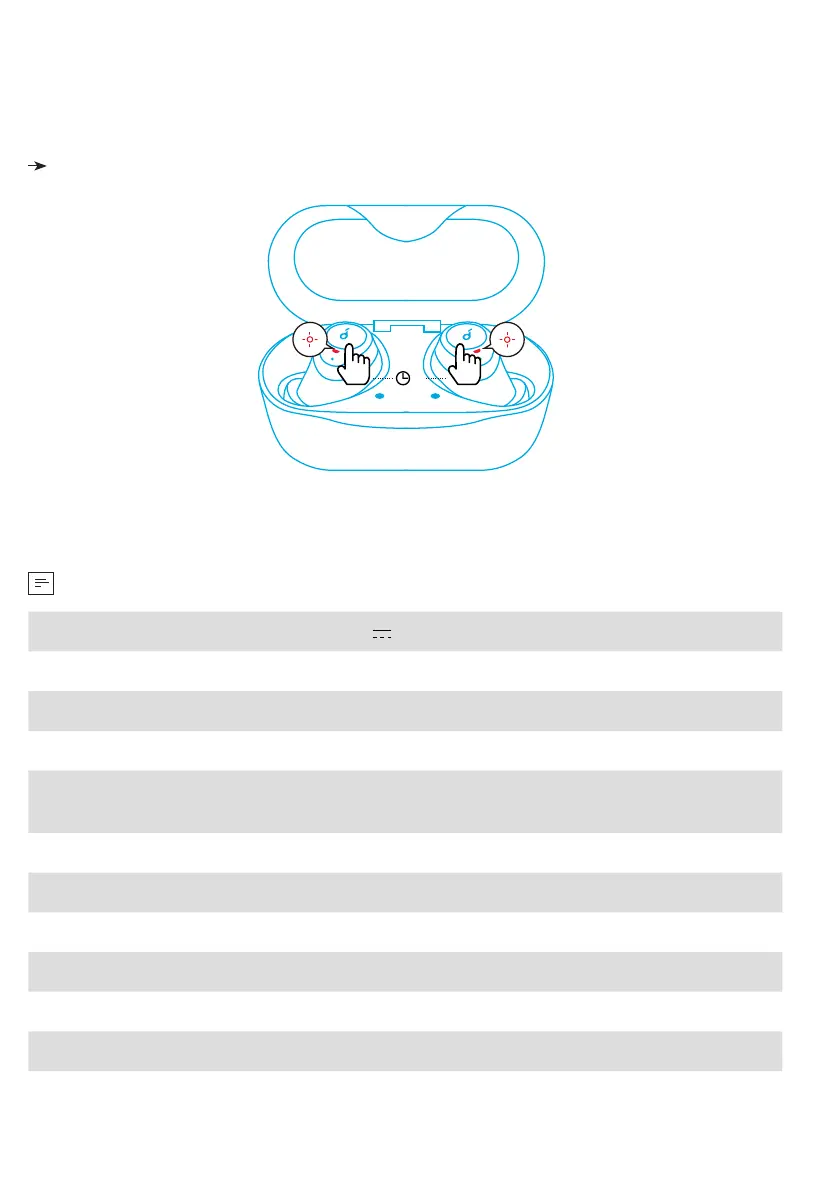 2. Press and hold the button on both earbuds for 8 seconds until the LED indicators