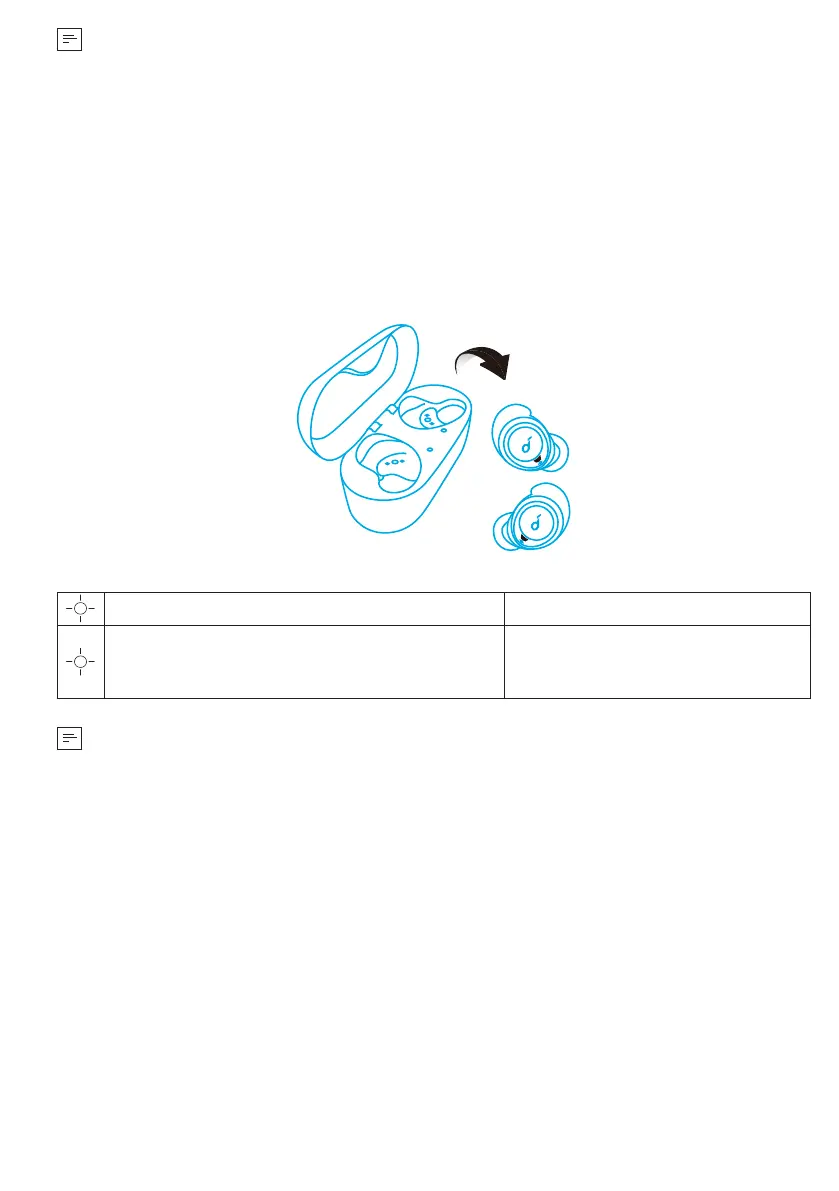 1. Slušalki vzemite iz ohišja za polnjenje oziroma ju ročno vklopite. Slušalki uspešno