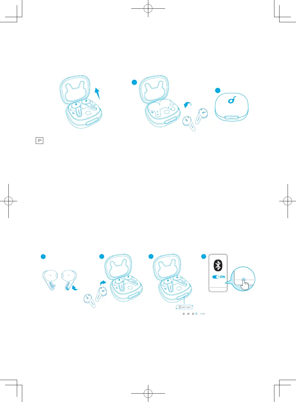Otevřete nabíjecí pouzdro a sluchátka se automaticky zapnou.