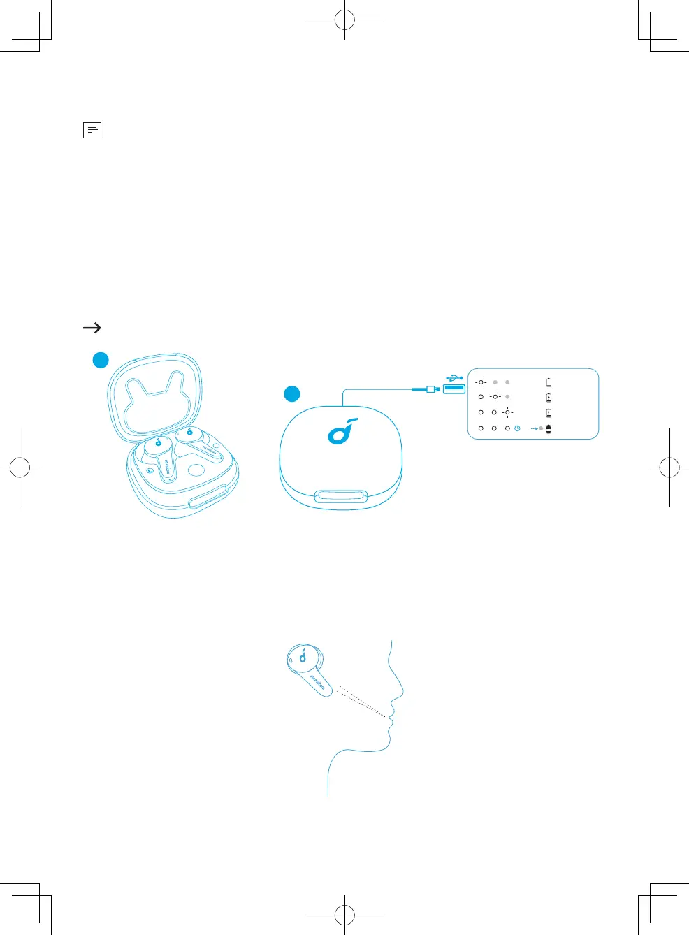 • Il primo utilizzo deve essere preceduto da una ricarica completa di auricolari e