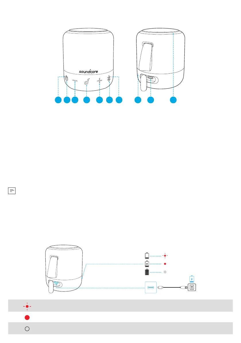 • Laad deze luidspreker vóór het eerste gebruik volledig op. Dit verlengt de