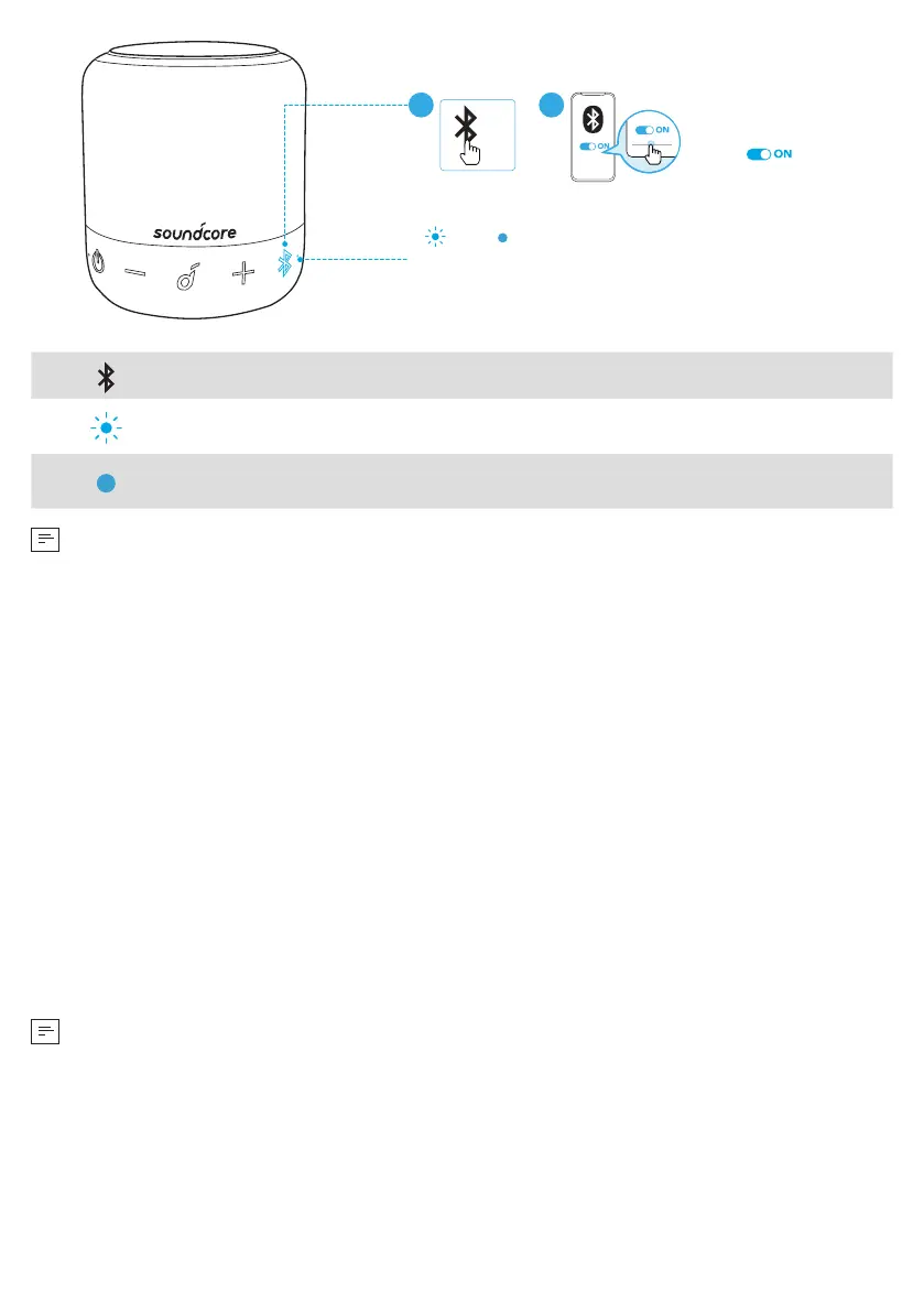 1. Naciśnij i przytrzymaj przycisk Bluetooth przez 2 sekundy na głośniku Soundcore