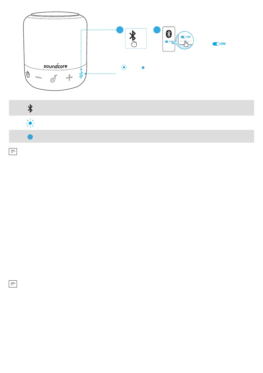 1. Mantenha o botão Bluetooth pressionado por 2 segundos no Soundcore Mini 3