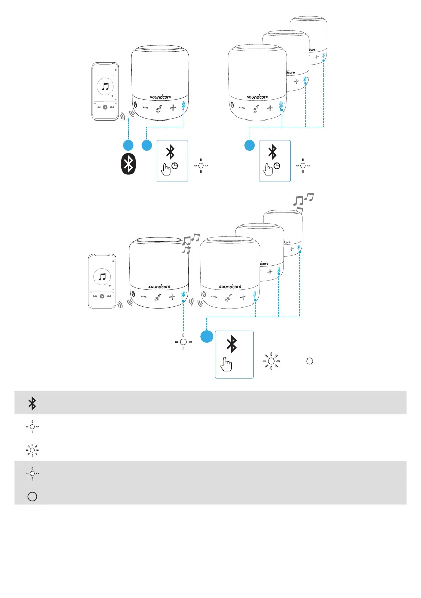 pressionando duas vezes o botão Bluetooth e buscando um alto-falante primário