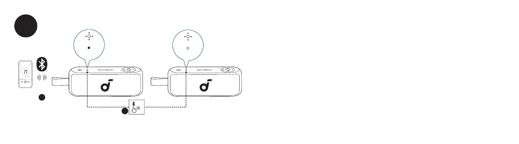 With one speaker connected to a smartphone, press and hold the Bluetooth button for 2 seconds on