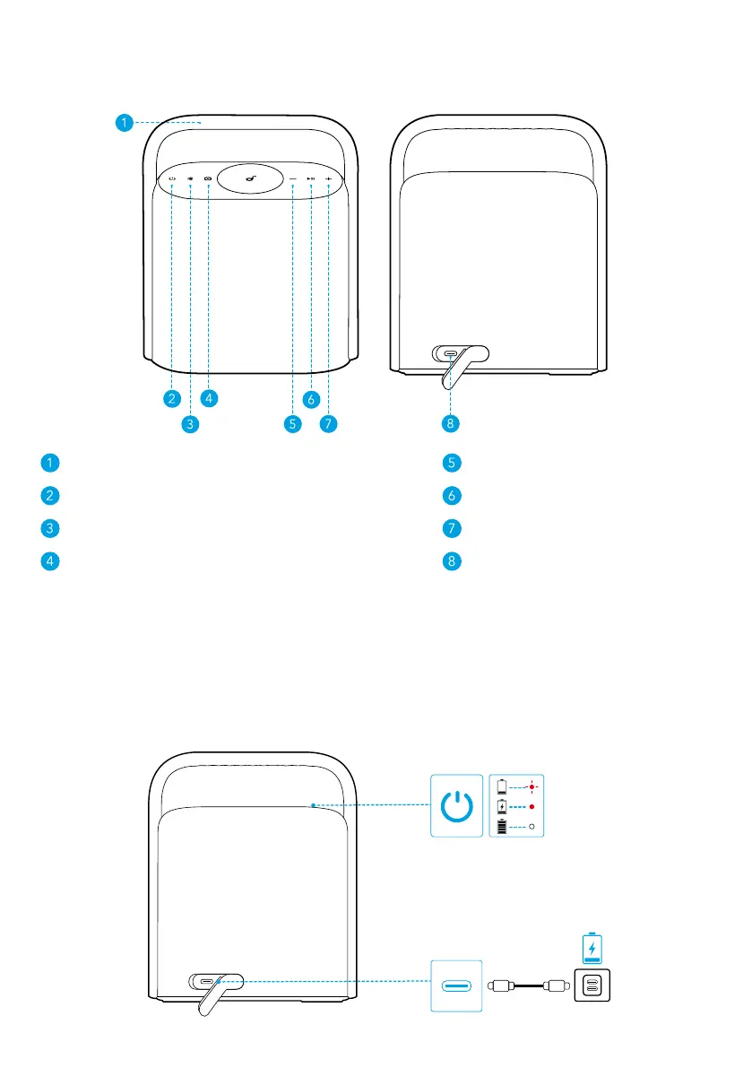Soundcore Motion X500 - At a Glance and Charging; Speaker Components and Ports; Charging the Speaker